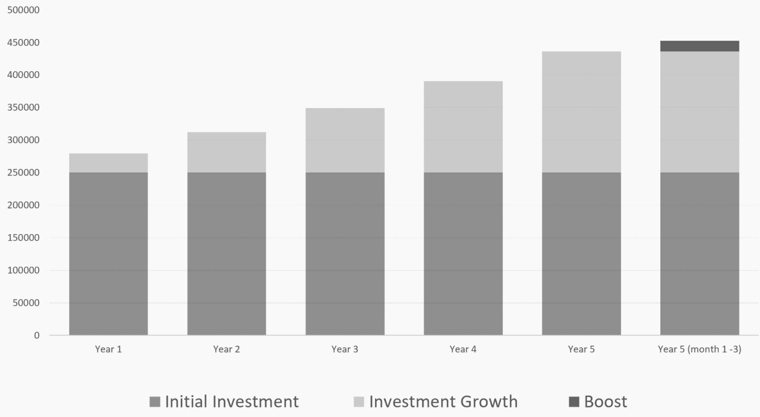 The boost: A boost of up to 6.49% can be expected if invested in the growth option for 5 years. If the switch is made after year 4 the boost is up to 3.25%. If the switch is made after year 3 the boost is up to 1.62%. If the switch is made before 3 years the boost will be forfeited. The boost is not a guarantee and is based on investment performance.